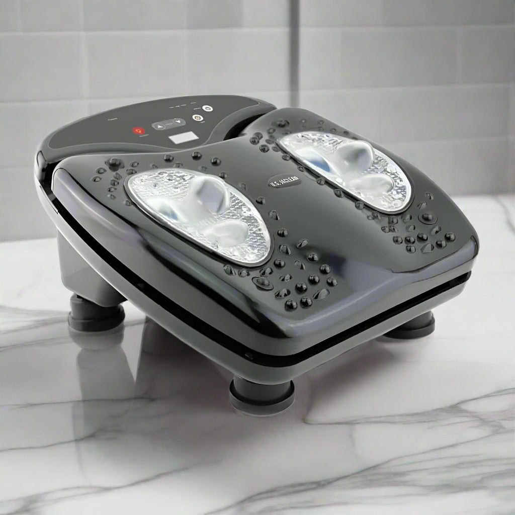 Experience total rejuvenation with the Daiwa Foot Vibe Pro Foot Massager USJ-871. Rely on built-in infrared and vibration technology to soothe achy feet and provide the ultimate comfort. Enjoy a complete massage with the four massage heads, three pulse intensities, and three massage modes. Get the relaxation you deserve with the Daiwa Foot Vibe Pro! Escape from daily stress with the Daiwa Foot Vibe Pro! Its infrared and vibration technology delivers all-encompassing comfort that will leave you feeling completely renewed and refreshed. The four massage heads, three pulse intensities, and three massage modes provide a tailored experience for ultimate relaxation. Get the peace you deserve with Daiwa Foot Vibe Pro!
