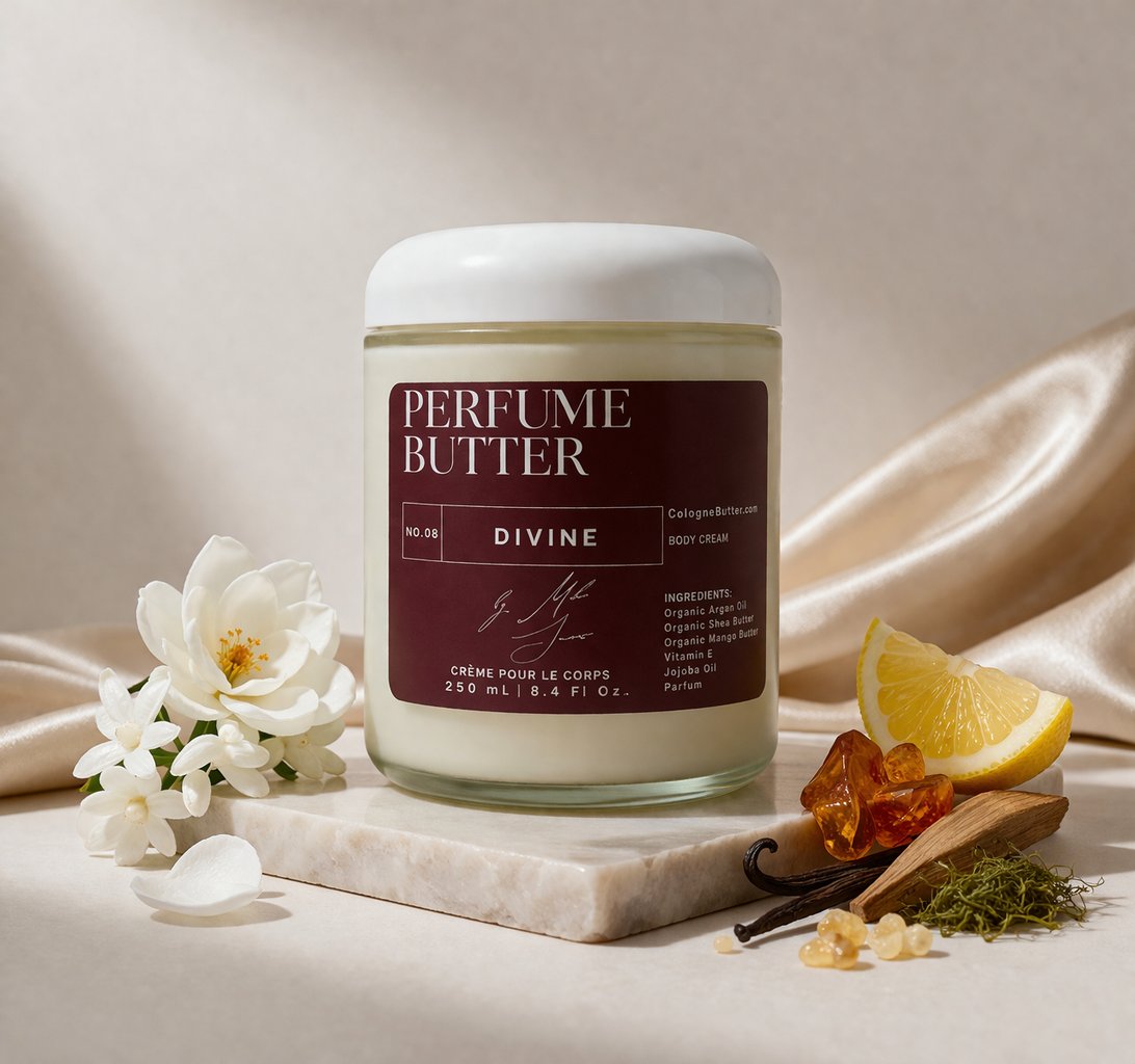 Indulge in the radiant elegance of Divine, a luxurious body butter perfume designed to nourish your skin while leaving behind a long-lasting, unforgettable fragrance. This rich, creamy formula melts effortlessly into your skin, delivering deep hydration with a silky, non-greasy finish.