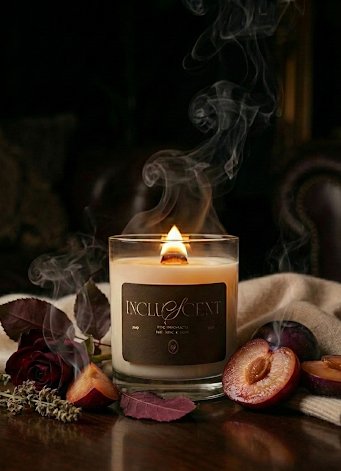 IncluScent®️ uses coconut wax, wooden wicks and phthalate free fragrances.