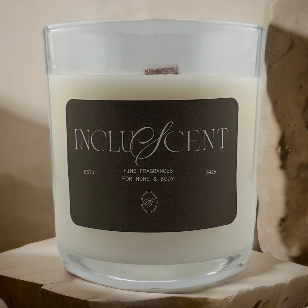IncluScent®️ uses coconut wax, wooden wicks and phthalate free fragrances.